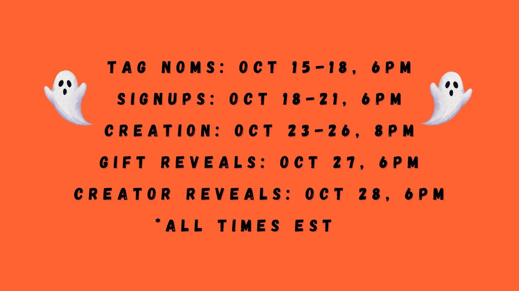 Following the schedule above, sign up on AO3 during the sign up window (link above) by filling out a form to request the content you want people to write for you as well as what content you are willing to create for other people. When the sign up period is over, you will receive your assignment by email, and you'll have 72 hours to create a piece for your lucky giftee!